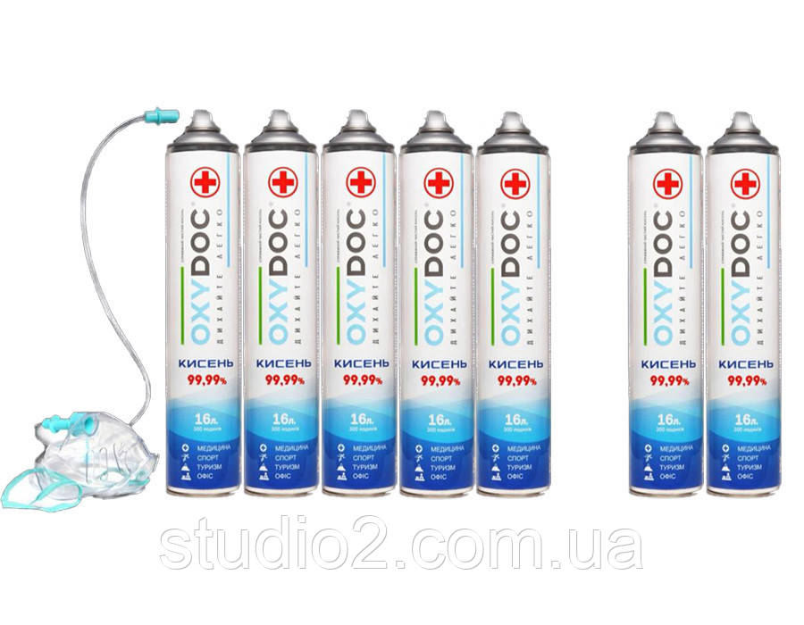 Набір кисневих балончиків OxyDoc (Туреччина) з маскою 16 л (5+2 шт)